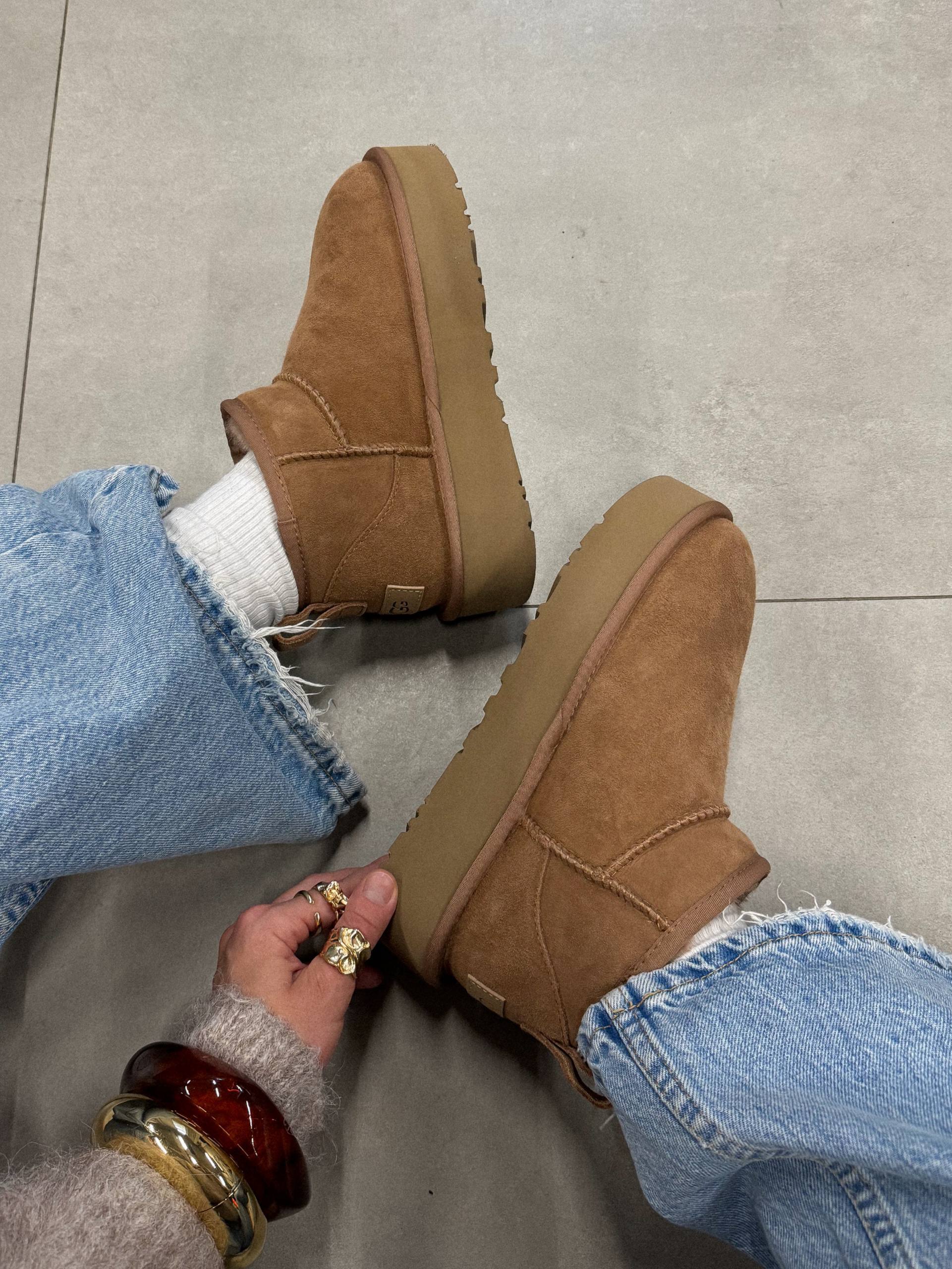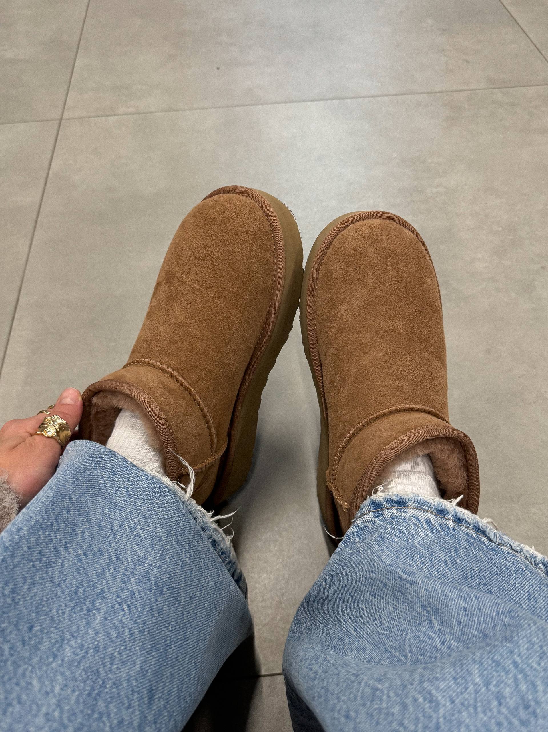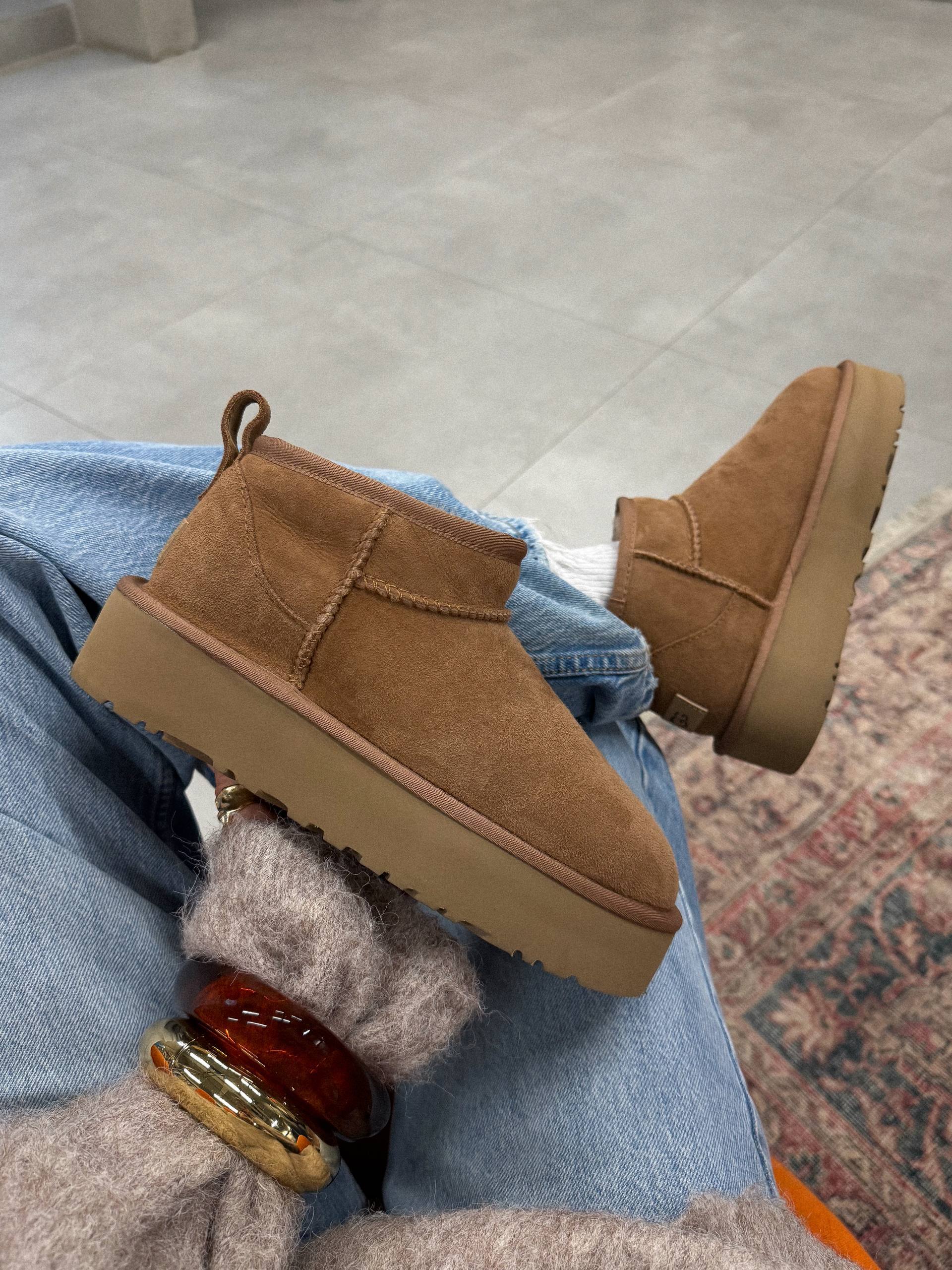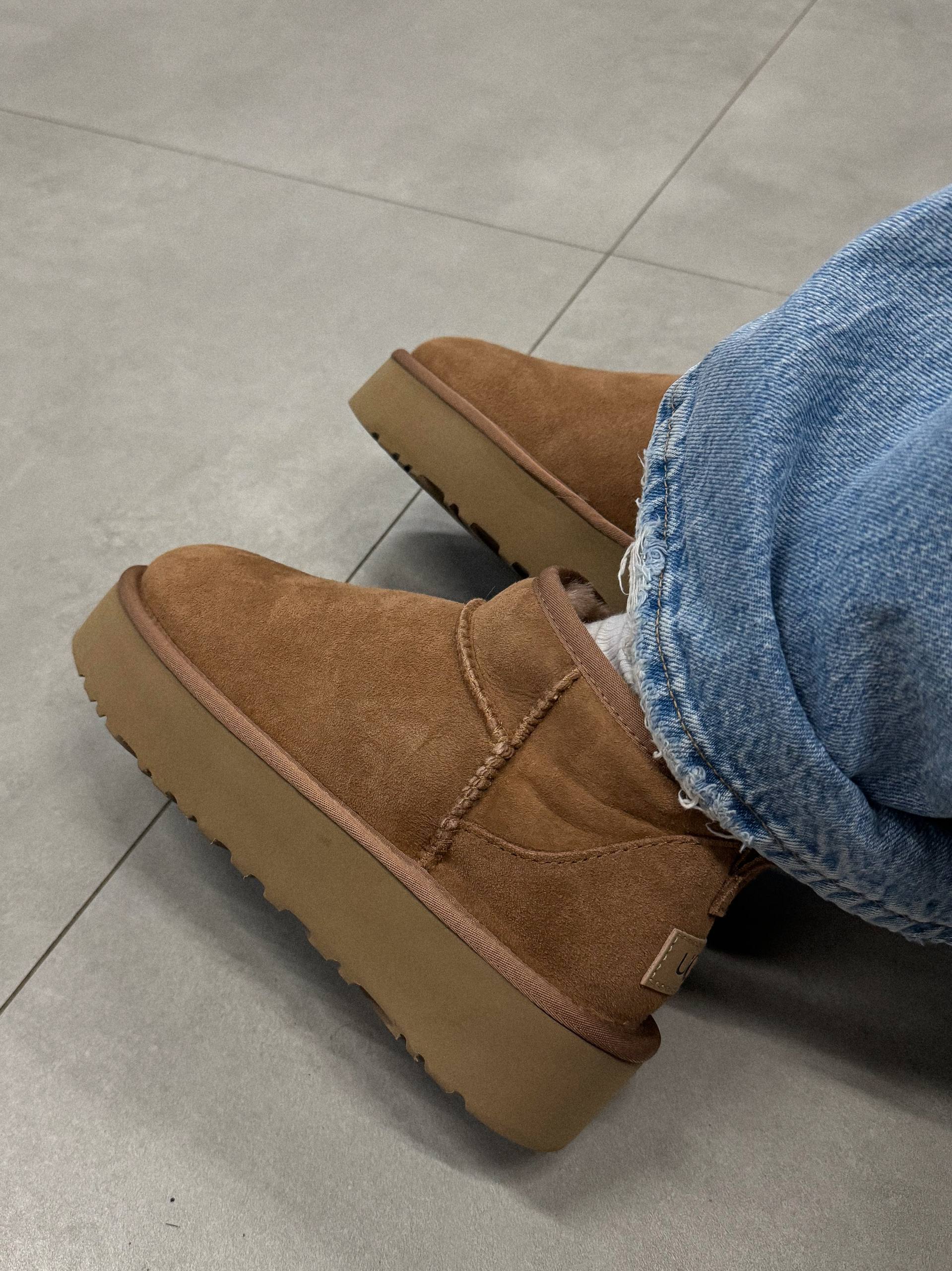 Угги на платформе Classic Mini, современная интерпретация классики, достигает новых высот благодаря удлиняющей ноги 5-ти сантиметровой платформе. Предлагая более смелый вид, чем когда-либо прежде, произведенs из натуральной замши, а смесь меха и шерсти UGGplush™ обеспечивает фирменную мягкость.