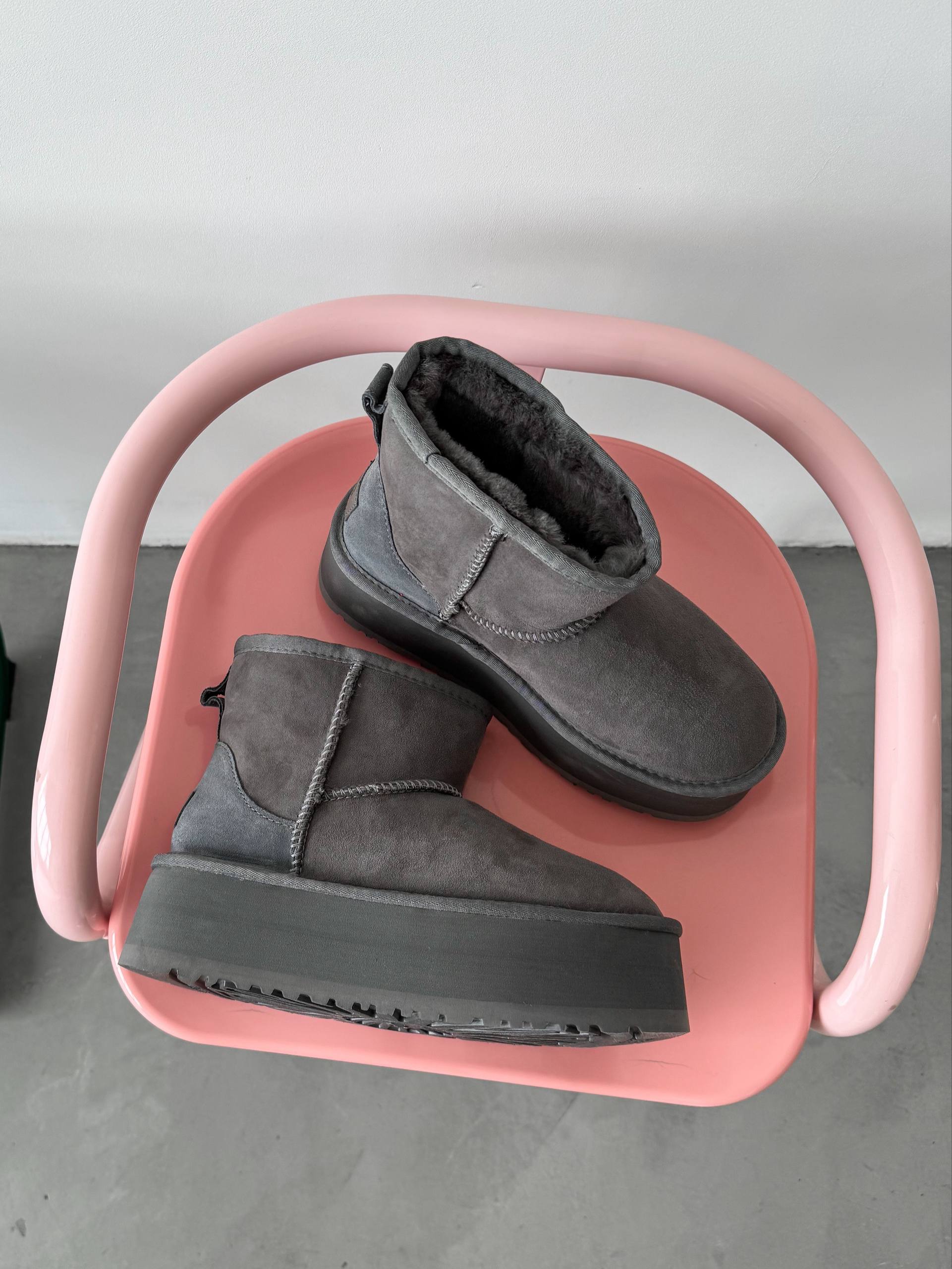 Угги на платформе Classic Mini Platform, современная интерпретация классики, достигает новых высот благодаря удлиняющей ноги 5-ти сантиметровой платформе. Предлагая более смелый вид, чем когда-либо прежде, произведенs из натуральной замши, а смесь меха и шерсти UGGplush™ обеспечивает фирменную мягкость.
